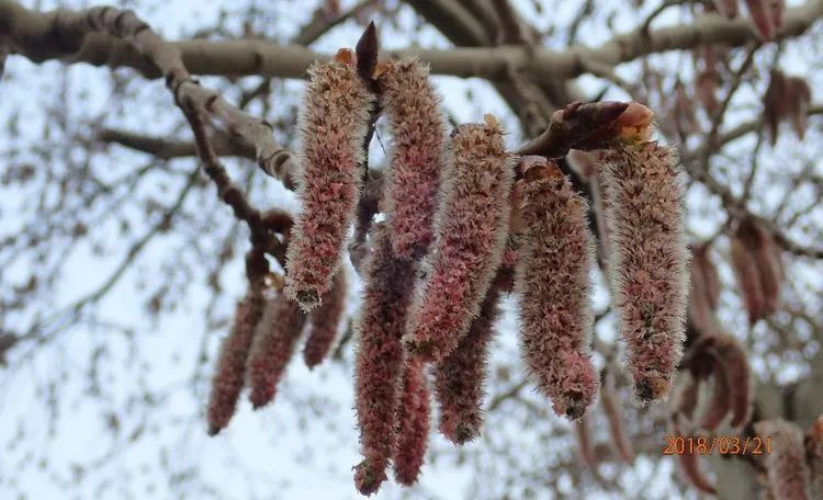 杨柳树在植物学上属于雌雄异株植物,分为雌株与雄株,飞絮则来自杨柳树的雌株。春天,杨柳树雄株会率先长出像“毛毛虫”一样的雄花序,雄花开放时,花药裂开,花粉随即飞散进行传粉,之后雄花序逐渐枯萎脱落。