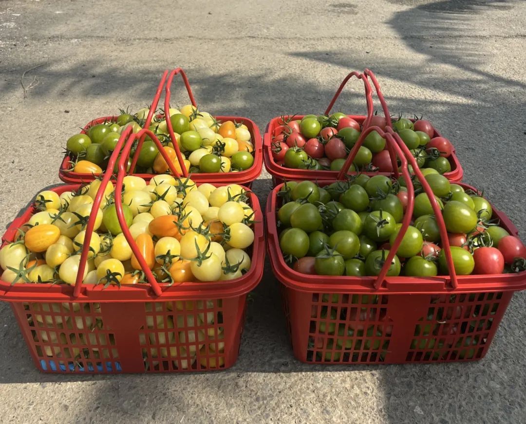 据了解,潭头镇文石村的七彩小番茄种植基地占地近4亩,共建有6个大棚,基地精心培育了多个特色品种,包括白美人番茄、绿宝石番茄、迷彩番茄、红樱桃番茄、草莓番茄等,预计亩产量可达7000-8000斤,售卖价格为每斤20元。