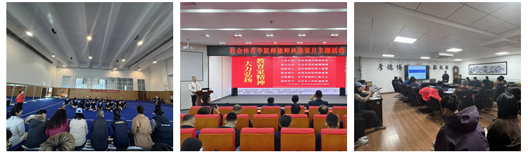 为大力弘扬教育家精神,推动师德师风建设工作不断深化,自3月中旬起,沈阳体育学院集中一个月时间,开展了以“铸高尚师德 树教育新风”为主题的“师德师风建设月”活动,多措并举强化师德师风建设,积极营造敬业立学、崇德尚美的校园氛围。