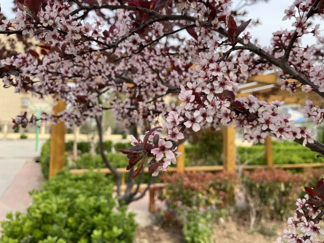 在微风的吹拂下,五颜六色的花朵散发出阵阵清香,春的景象尽收眼底,一幅“生态宜居”的美丽画卷正徐徐展开来。