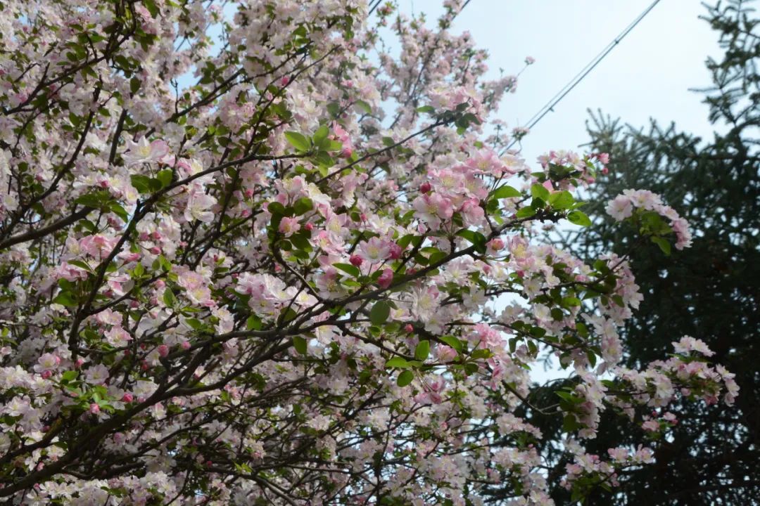 各种各样的小花绽放枝头、随风摇曳,一团团、一簇簇,灿烂迷人。