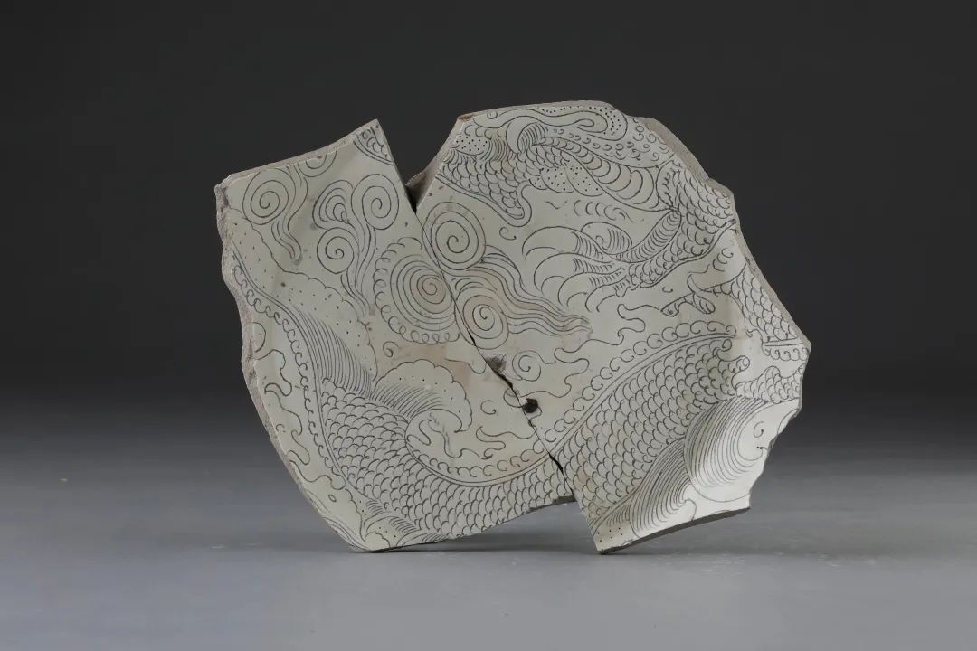 △北宋白釉摩羯鱼纹刻花瓷器残件