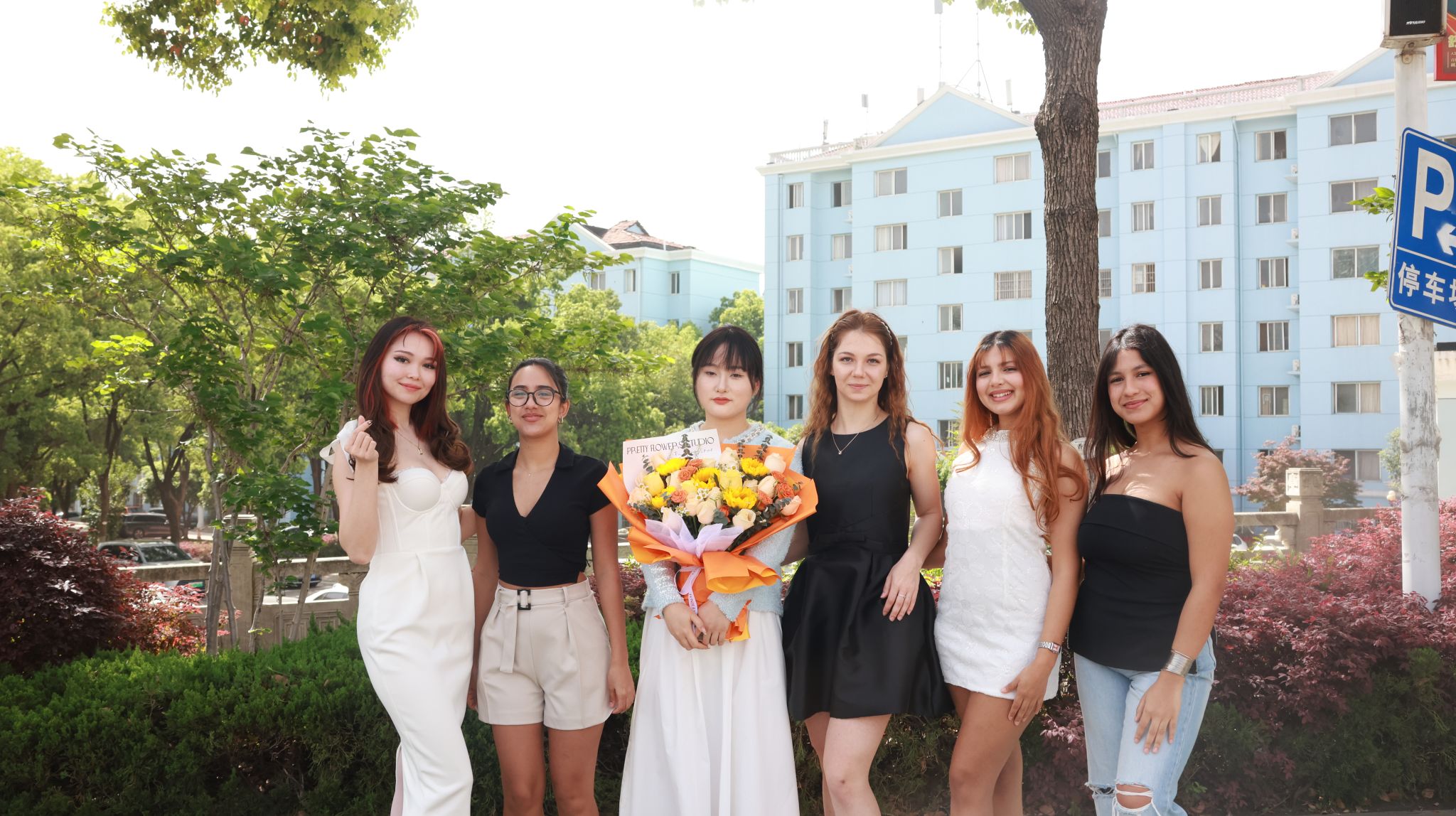 拍摄过程中,各学院学生代表向校长赵作斌教授献上鲜花,表达了对学校多年培养的感激之情。校长也对毕业生们表达了美好的祝愿,希望他们在未来的人生道路上继续努力。