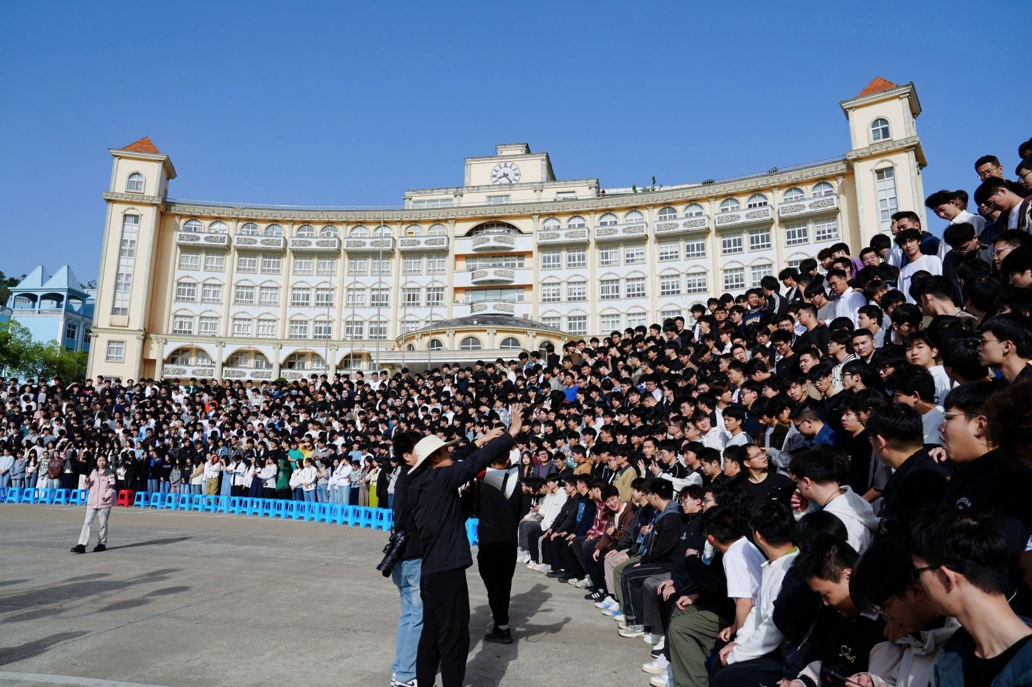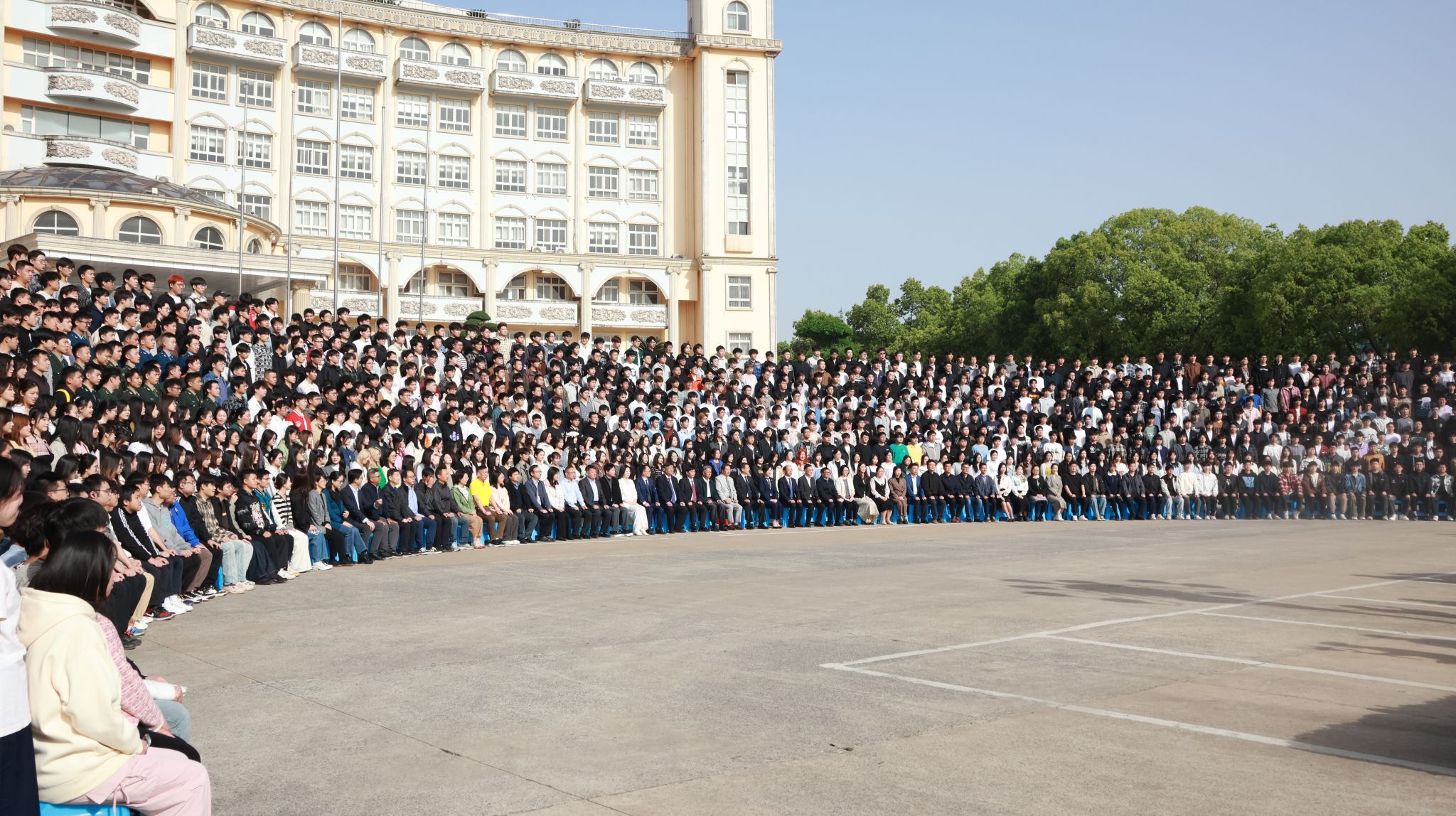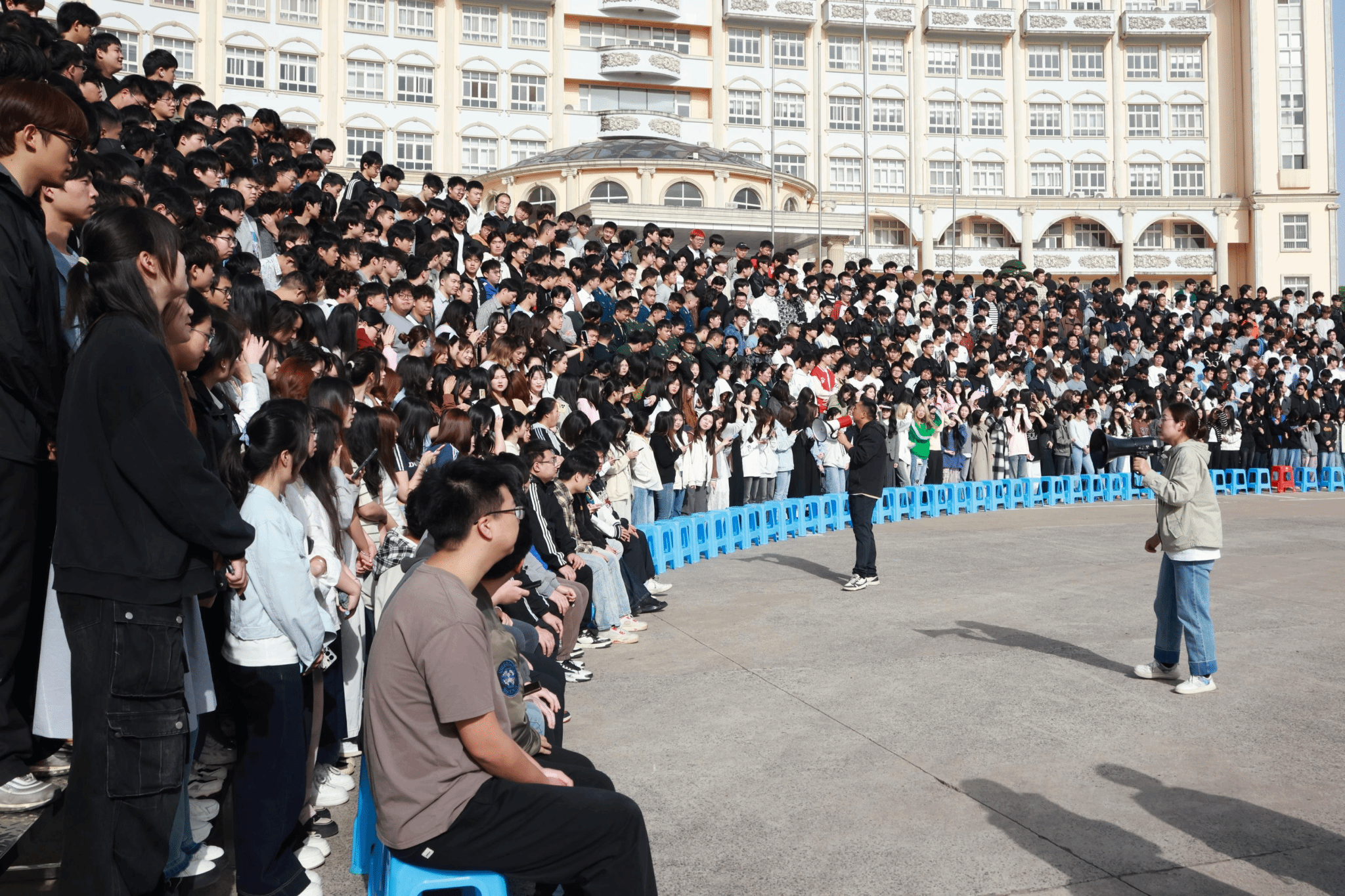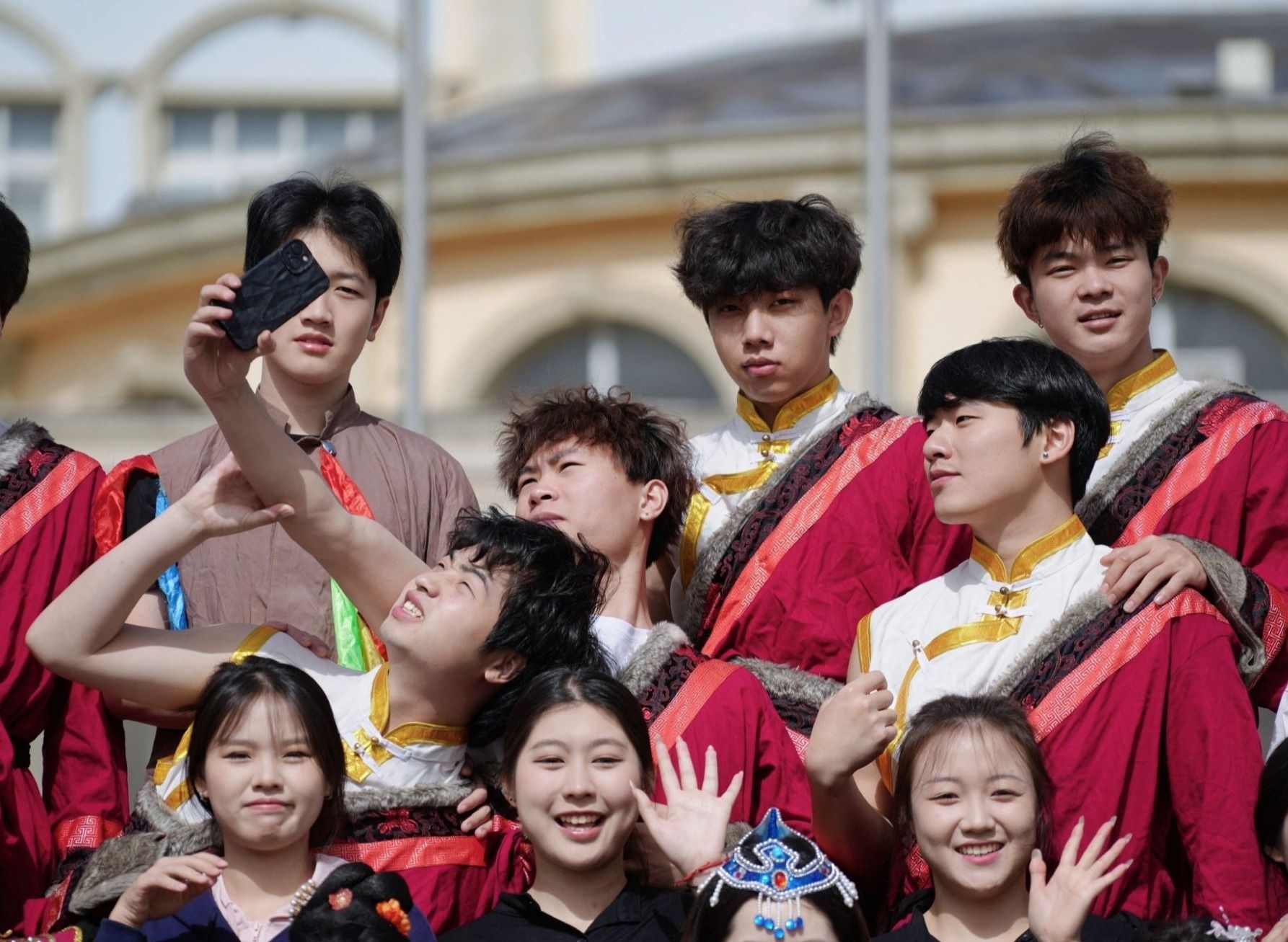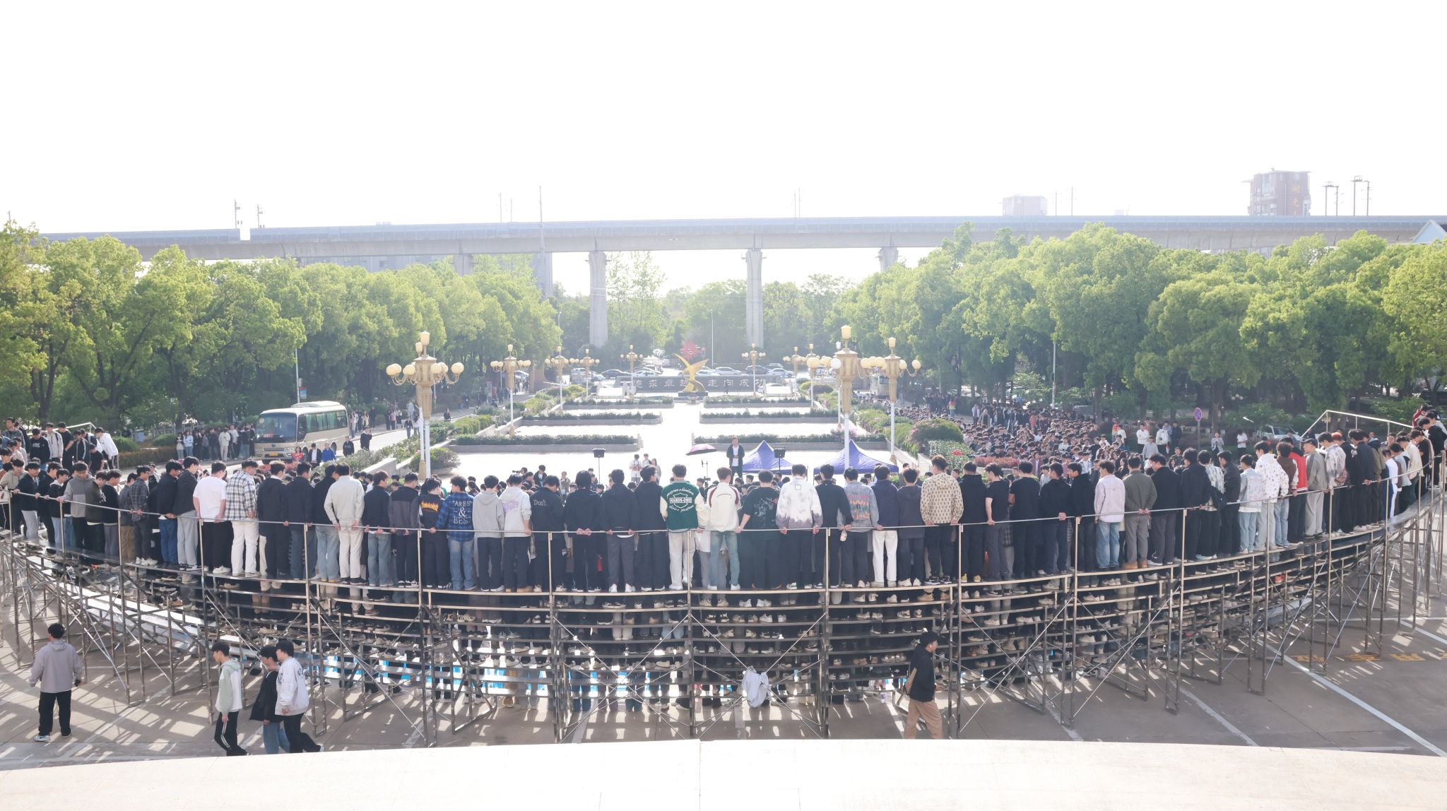 “2026届毕业生共6100余人,为了满足各学院的拍摄需求,学校精心搭建了8层半圆形阶梯架”,毕业生就业指导中心主任齐歌继续分享道:“为了确保每个毕业生都能够在‘全家福’中清晰地看到自己,学校聘请专业摄影工作室拍摄毕业‘全家福’,并精心制作成毕业相册,将于毕业前夕赠予每位毕业生留念。”