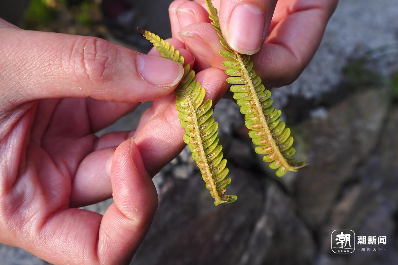 笔筒树叶片背面的孢子囊群。潮新闻记者 吴馥梅 摄