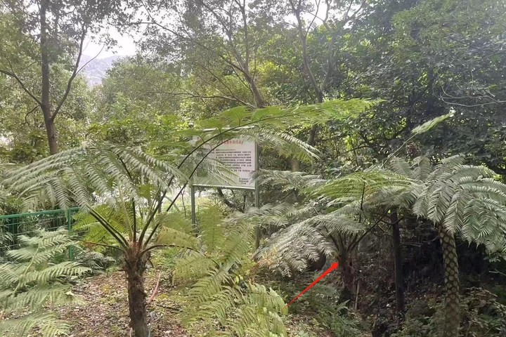 浙江省亚热带作物研究所内的一棵笔筒树。潮新闻记者 吴馥梅 摄