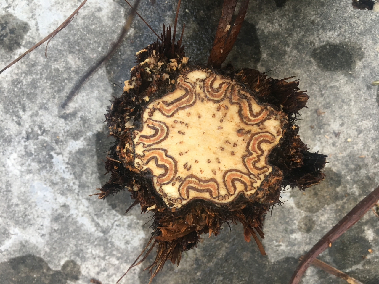 笔筒树茎干截面的圆圈花纹。受访者供图