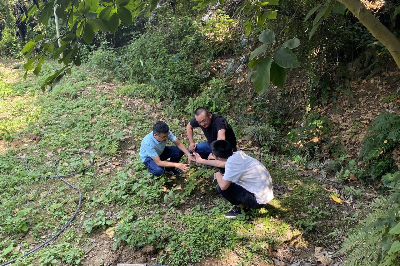 团队成员在野外工作,讨论如何改善原生境。受访者供图