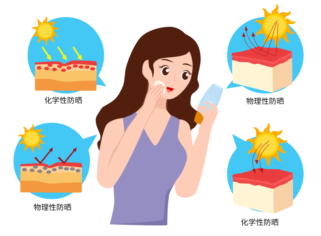 按照不同成分,防晒产品通常分为物理防晒和化学防晒。