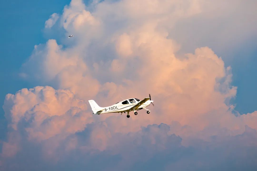 2024年8月8日,武汉汉南机场 ,一架小型飞机载着游客向上爬升。记者胡冬冬 摄