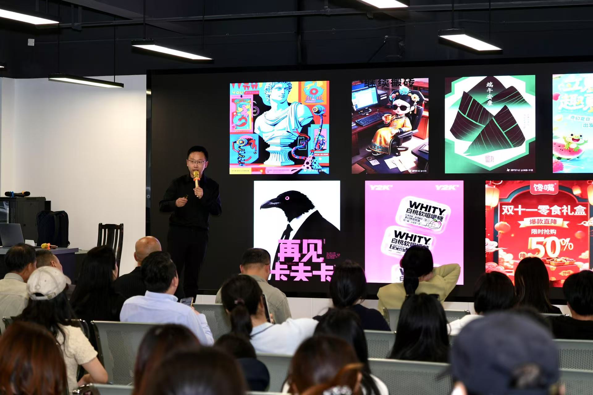 夏老师是南京大学博士,深耕大模型领域多年,主要研究方向为多模态人工智能、机器视觉、自然语言处理等,致力于将先进人工智能算法应用于实际产业中。他从底层逻辑来分析,多模态大模型能理解艺术家的模糊指令,甚至提出反直觉的创意方案。他以团队开发的AI设计系统为例,展示了一套家具设计方案如何通过人机交互迭代5次后,最终生成连设计师都惊叹的"东方极简主义"作品。