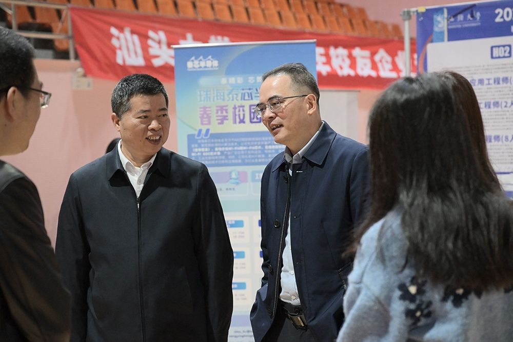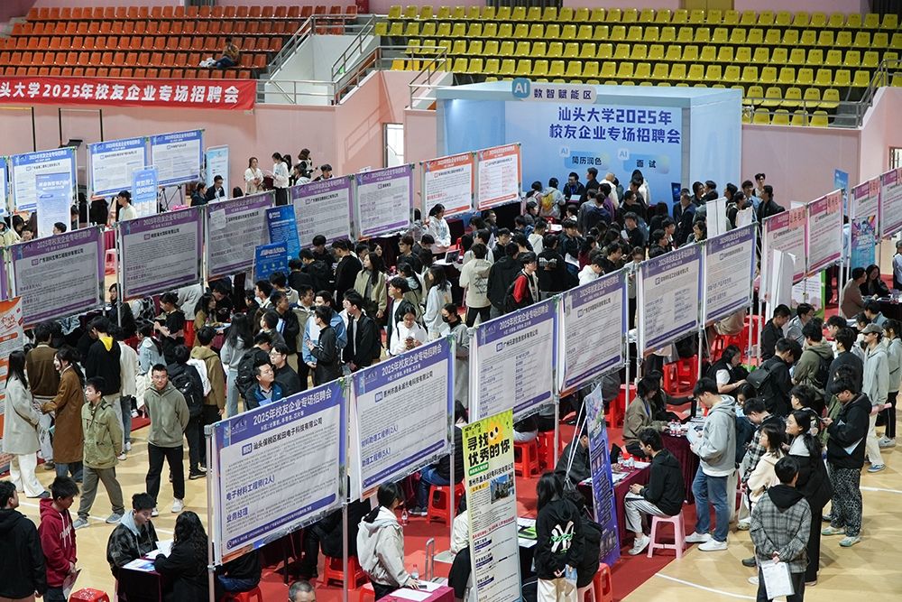 3月29日,由汕头大学招生就业处、校友工作办公室主办的汕头大学2025年校友企业专场招聘会在桑浦山校区老体育馆举行。学校招生就业处处长苏俊枝、副处长兼招生办公室主任林世宏,以及各学院领导、老师们莅临招聘会现场指导工作。