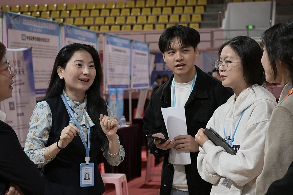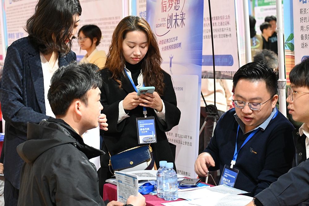 本次招聘会得到了毕业生的积极响应。在活动现场,同学们与各用人单位积极沟通交流。大四行政管理专业毕业生罗同学在活动中积极寻找珠三角地区工作的企业,认为其具有更多的发展机会,同时也会考虑专业对口性、个人能力的胜任情况、薪酬待遇以及就业劳动保险情况。这次的招聘会中罗同学参与了几场初试,认为学校提供的与企业交流的平台可以更好地帮助自己了解企业、找到工作。2025届海洋科学专业的毕业生李同学表示在上一次招聘会中已经得到了offer,但希望在这一次招聘会中可以继续找寻更多与专业对口的企业,希望就业的地点可以离家更近。根据过往的学习和招聘会参与经历,他认为相关的就业规划课程很有帮助,学校组织的招聘会也可以为同学们提供更丰富的选择和更精准的对接机会。