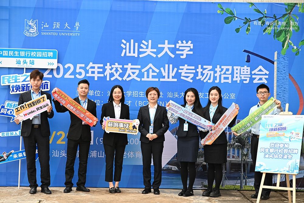 中山市向州国际教育培训校长、汕大2003级英语专业校友禤恒坤连年参加校友企业招聘会,成功将许多汕大学子带入企业之中,他提到学校提供了一个很好的平台让学生们发现自我、对外交流、拓宽视野,他强调同学们要拓展自己的视野,打破信息差,提高自己的职业素养,要广泛了解行业,挖掘自身差异化竞争优势。中国民生银行股份有限公司汕头分行人力资源总经理许东萍表示,他们企业对汕头大学学生有着很高的期待,一方面是汕头大学过往入职的员工表现优秀,另一方面是认可汕头大学的教学水平,在选择人才方面,他们不限制专业,更加注重学生综合素质和适应能力,会提供实习机会和完善的培养体系,并鼓励学生利用这个平台发展提升自我。