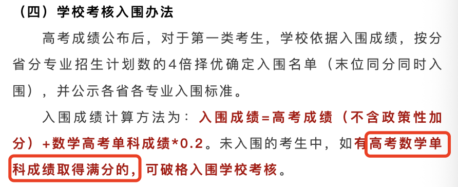 如:北理工招生简章明确,未入围的考生,如有高考数学单科成绩取得满分的,可破格入围学校考核。