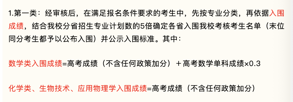 华南理工大学针对数学类专业入围作单独认定,数学类入围成绩=高考成绩(不含任何政策加分)+高考数学单科成绩×0.3,同样强调了数学单科成绩的权重。