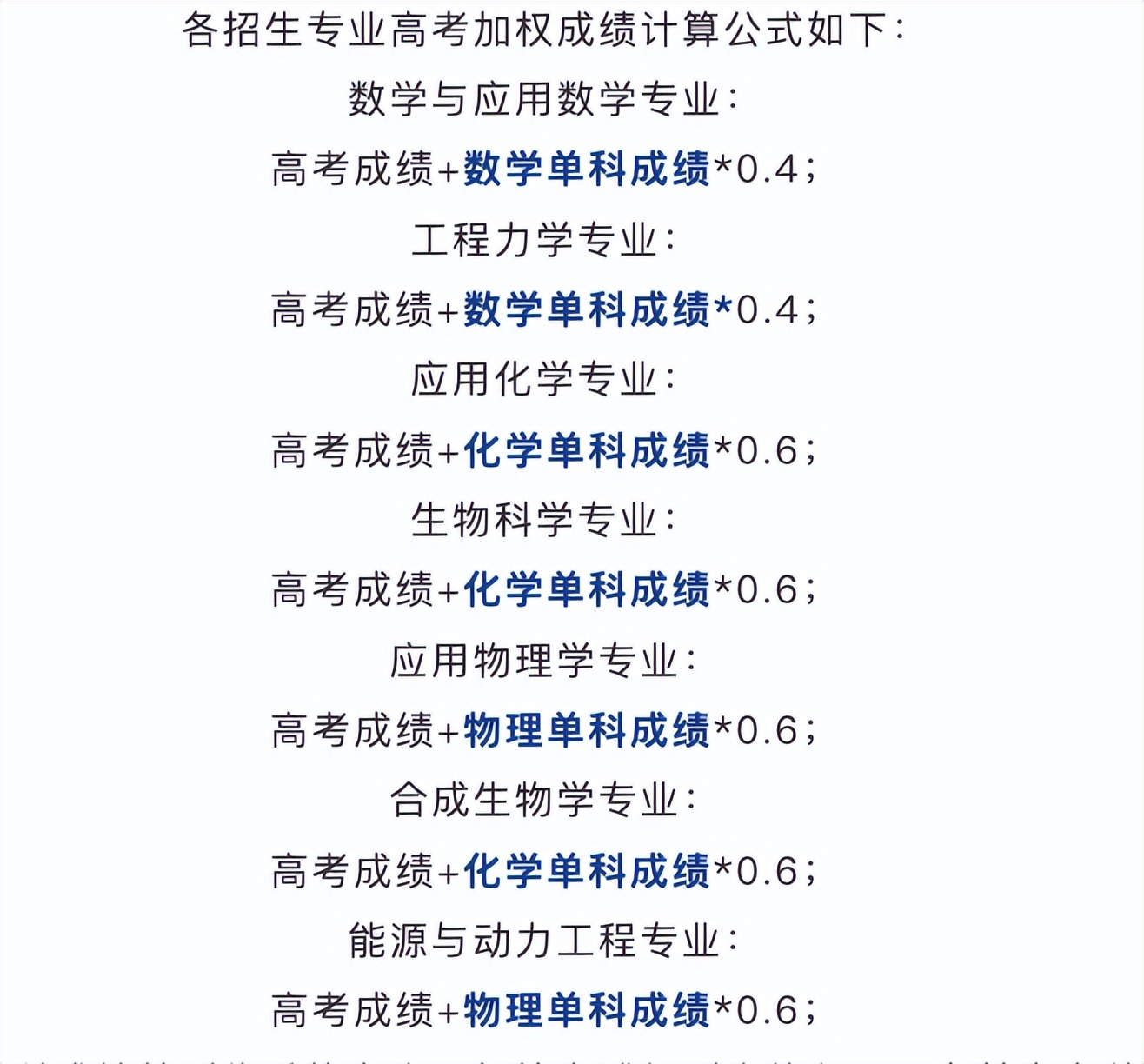 如天津大学在强调单科成绩突出可破格入围的同时,根据不同专业对高考成绩中数学、物理、化学的权重进行加权计算。