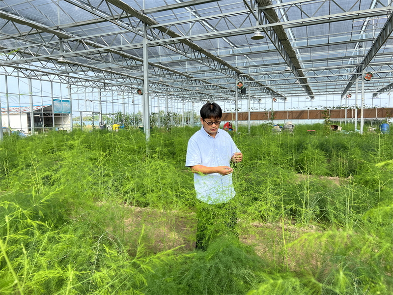 在东平村现代化育苗基地,2500平方米玻璃温室如水晶宫殿般矗立,内部组培室、种质资源圃、杂交实验区一应俱全——这里累计投入500万元,成为国内顶尖的芦笋育种“实验室”。姜朝晖深知,现代农业离不开科技赋能,他将论文写在田间地头,更写进了实验室的数据里。