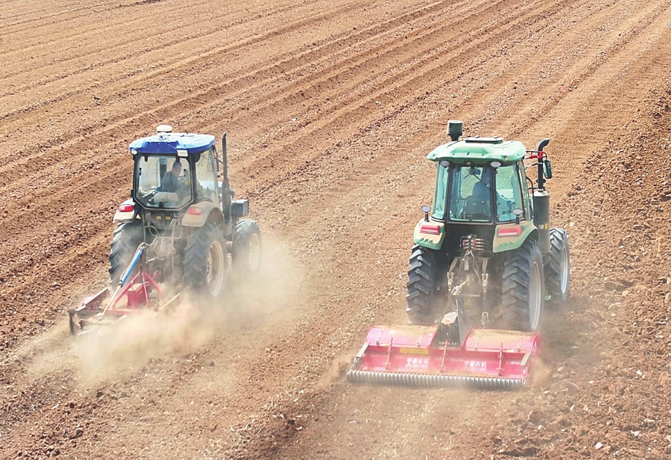 原平市春耕现场,农机正在整备耕地。樊晶瑾 摄