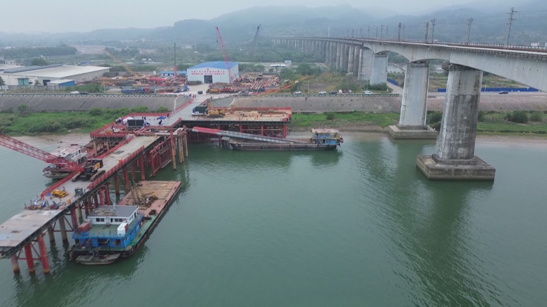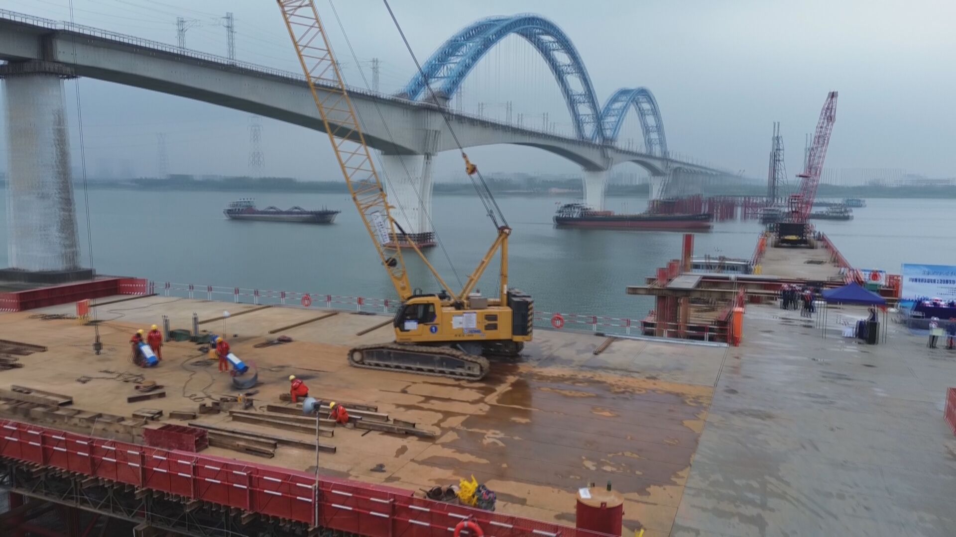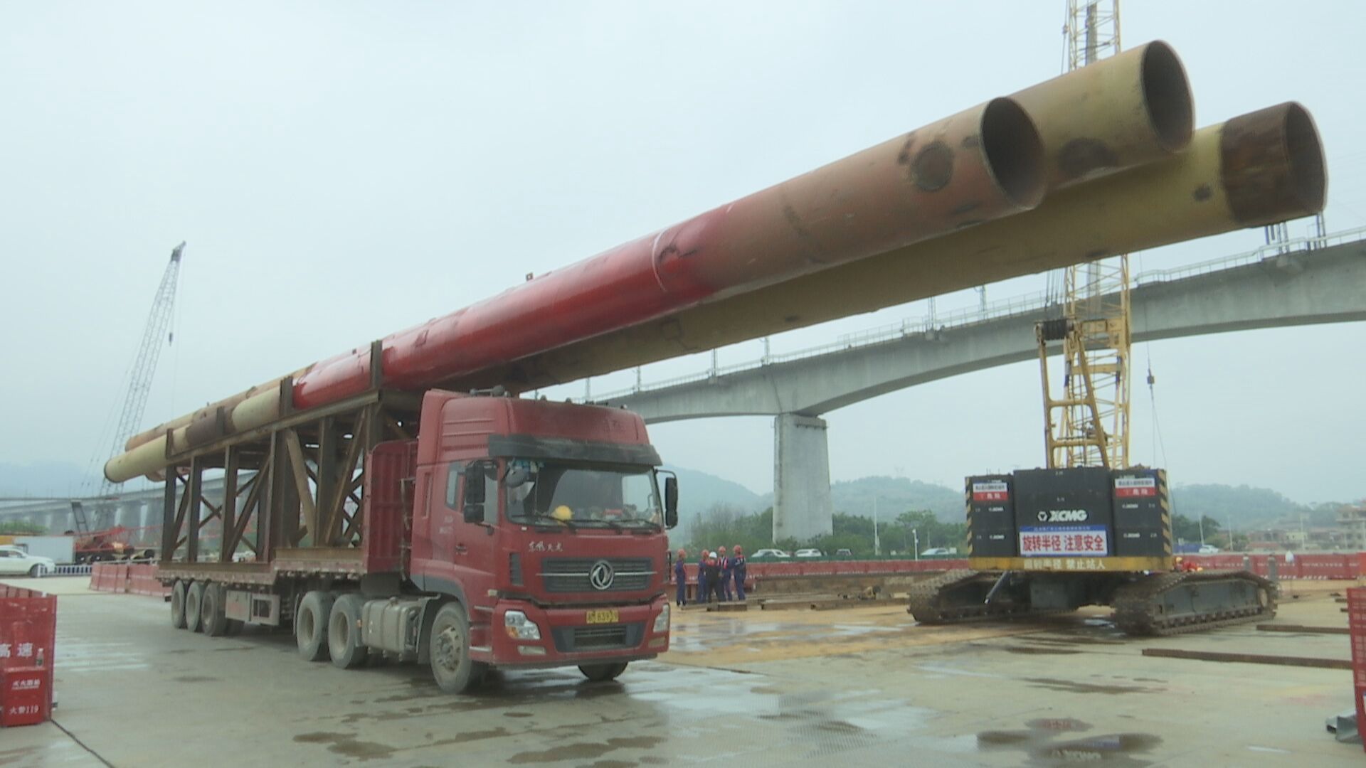 南新高速土建TJ01标三分部项目经理张奥介绍说:“目前正在进行的是西江特大桥的水上栈桥平台作业,平台搭建完成后紧接着会进入装机施工作业阶段。我们争取在西江洪水来临之前,把栈桥平台加固好,让后续的施工过程更加顺利。”