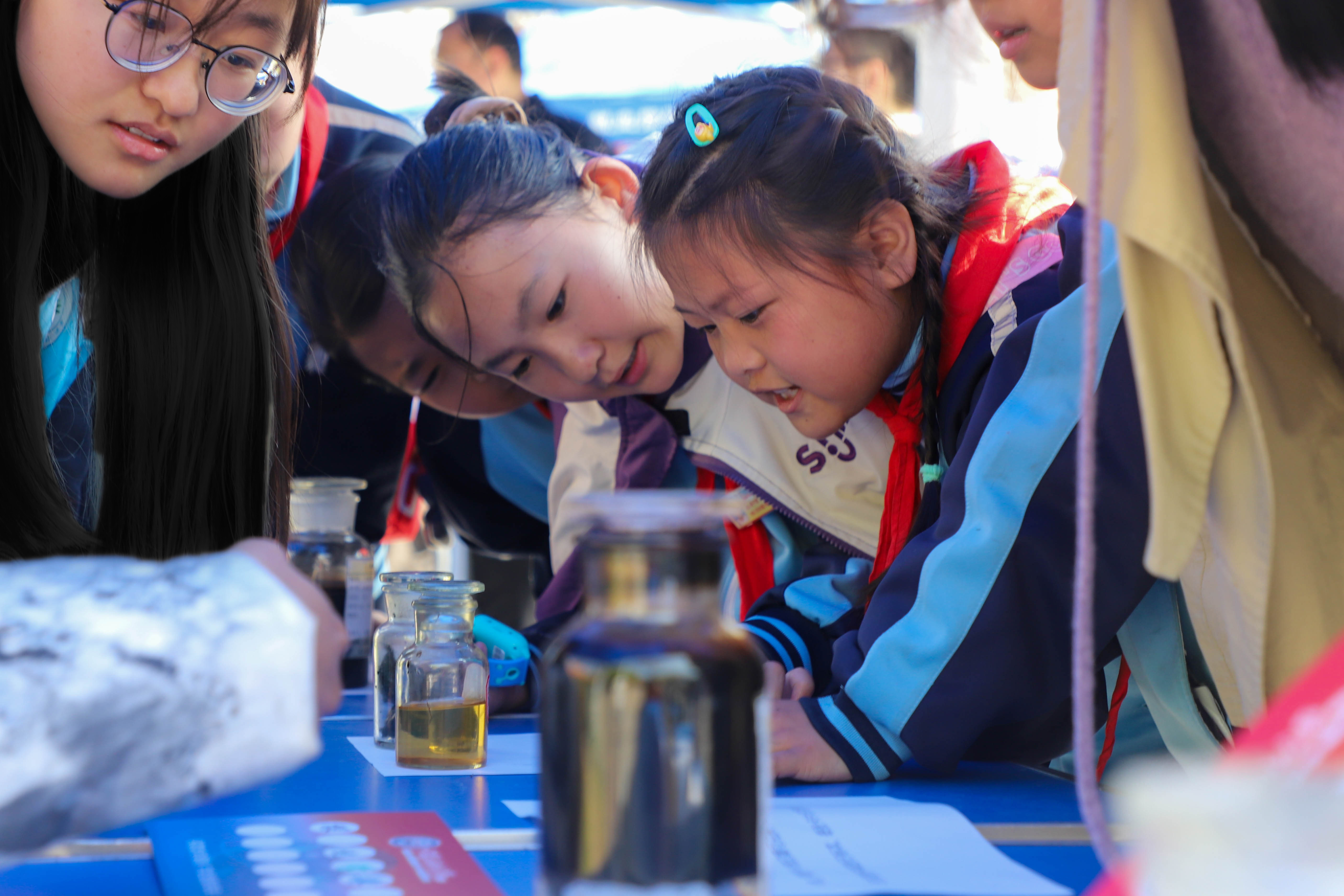 “地球科普”重力仪、原油样品等各式各样的油气勘探开发领域的各式设备也被搬到活动现场,该校地球科学与技术学院的教授们化身科普宣讲员,为来自灵山卫小学、积米崖小学、珠江路小学的近200名小朋友和家长现场讲解。同时,活动还组织了深层油气全国重点实验室、地质博物馆两条参观线路,让同学们走进高端实验室,认识地球演化、爱上地球科学。