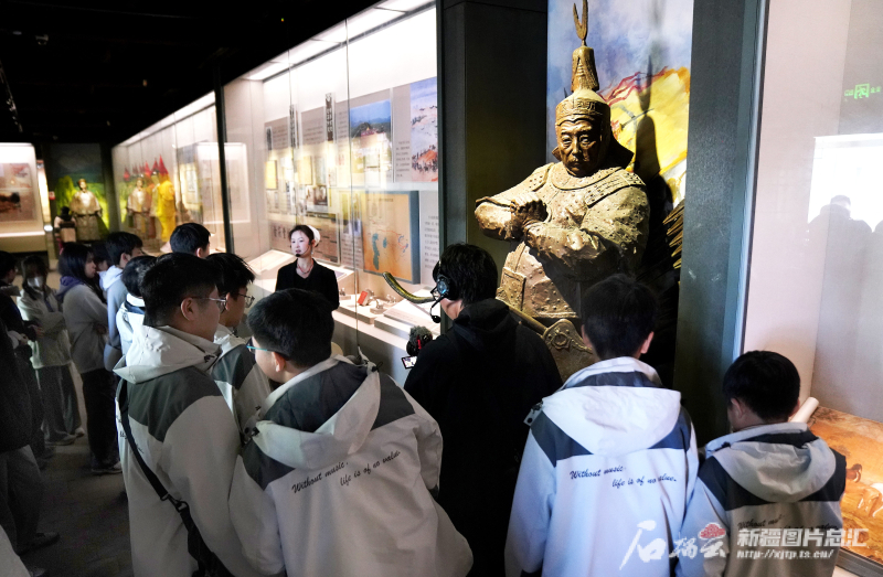 4月21日,“美美与共,同心筑梦”香港创知中学新疆研学团的师生们前往伊宁市的石榴花展览馆,了解新疆各民族开发建设祖国边疆的历史。