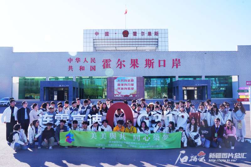 4月20日,“美美与共,同心筑梦”香港创知中学新疆研学团的师生们在霍尔果斯口岸合影留念。
