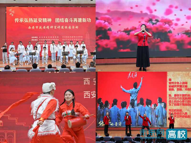 活动现场亮点纷呈,群口快板《燃烧的音符》以铿锵节奏演绎革命激情,唢呐名曲《山丹丹开花红艳艳》用传统民乐诉说红色记忆。西安石油大学大学生艺术团与安塞腰鼓协会带来的乐器合奏《我和我的祖国》和舞蹈《鼓动天地》等节目,更将当代青年对延安精神的传承融入艺术表达,构建起红色基因代际传递的生动图景。互动环节中,同学们争相抢答延安精神相关知识问题,展现出新时代青年传承红色基因的使命自觉。