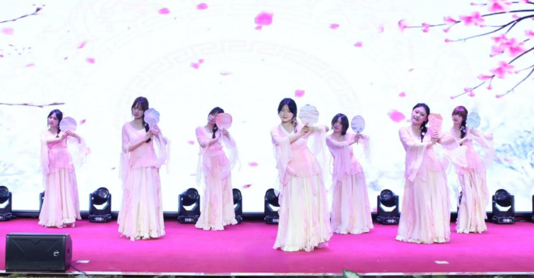 当悠扬的民族音乐响起,同学们用舞蹈诠释了桃花的娇艳与灵动,展现了民族文化的独特魅力。