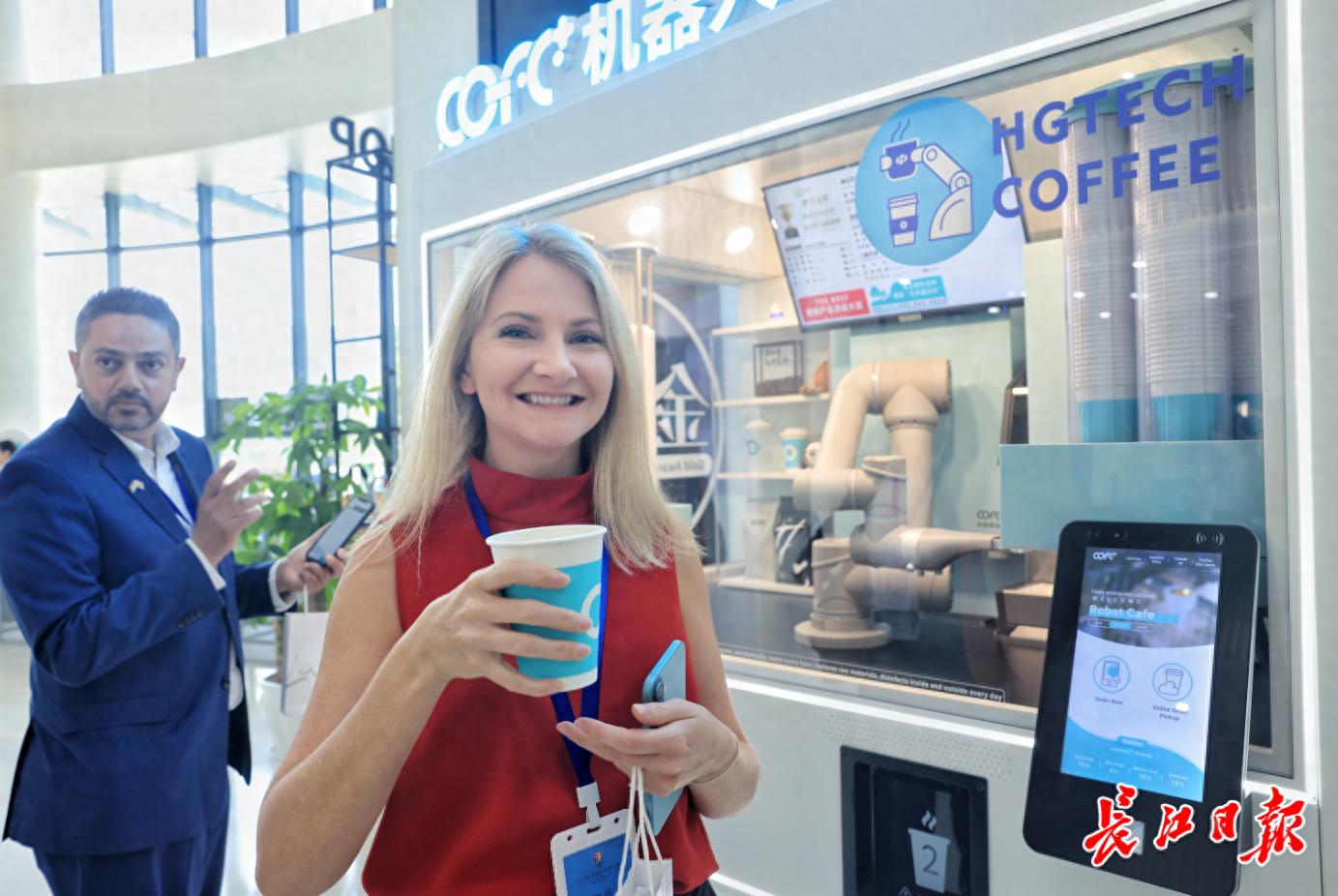 国际友人参观华工激光,体验机器人咖啡。