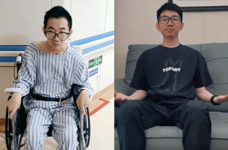 吴先生在短视频平台分享自己康复前后状态对比 图源:视频截图