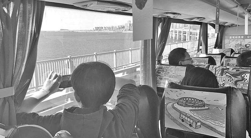童笔绘景公交变身“文化站” “我画这幅画,是因为我家住在渔人码头附近。每天傍晚时分,爸爸妈妈会带我去渔人码头附近散步,我觉得这里的风景美极了。我特别喜爱自己居住的环境。”甘井子区东方路小学五年一班的楚薏霏同学说。 为了此次线路开通,汽车二分公司与东方路小学联合开展“童笔绘美景 公交游大连”主题活动,组织学校学生围绕开通的公交旅游线路沿途的旅游景点、公交车辆为主题创作绘画等作品,激发小学生的创造力和艺术天赋,通过绘画的方式让他们更深入了解大连的旅游景点和公共交通,培养热爱家乡的情感。 “学生们纷纷化身城市推介官,将跨海大桥、星海广场等大连的标志性地标,通过锡纸画、纸袋画、金箔画、葫芦画等形式进行创作,来表达他们对家乡的热爱。”甘井子区东方路小学副校长李韧说。“我能感受到小朋友们都非常热爱自己的家乡,并且对家乡的了解也十分深刻。他们笔下的每一个景点都画得特别生动。大连确实很美,值得大家去热爱。”一位乘客看到车厢内的绘画作品说道。本次主题活动将选出优秀作品在车厢内展示,以此推广开通的公交旅游线路,增强公众对公交旅游的关注度,吸引更多市民选择公交出行游览城市景点。“我们希望大连市的中小学生以及外地游客都能带着自己的画作来打卡旅游巴士,让公交车不仅成为城市的交通工具,更成为城市文化的载体。”汽车二分公司团委书记陈思奇说。