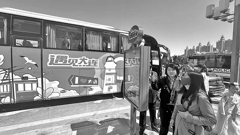 10元坐享大连文旅地标 记者来到环城旅游巴士西线的始发站星海湾百年城雕时,有不少游客正在买票上车。“我们几个人是从哈尔滨过来的,听说大连的跨海大桥特别漂亮,正好看到有公交车可以沿着这条线路行驶,于是我们就买票上车了。”一位来自哈尔滨的游客说。据汽车二分公司运营管理部智能调度中心主任陶俊卿介绍,接下来,环城旅游巴士西线将进一步延伸至小平岛,全程共延长7公里,沿途会经过高新园区的多个旅游景点。 旅游公交线路讲解员唐玉亭介绍,游客乘坐棒棰岛至东港东方水城区间直通车,可以欣赏沿途的风景,包括记者林两侧的美景、百年电车、大连的都市景观以及感受东方水城的浪漫气息。此外,还可以欣赏大连的都市风貌和夜景。“该线路的时间安排灵活,每半小时一趟,末班车时间视景区情况而定,如果人流量大,时间会相应延长。整个行程时间约为一个小时,具体时间根据客流情况调整。”唐玉亭说。