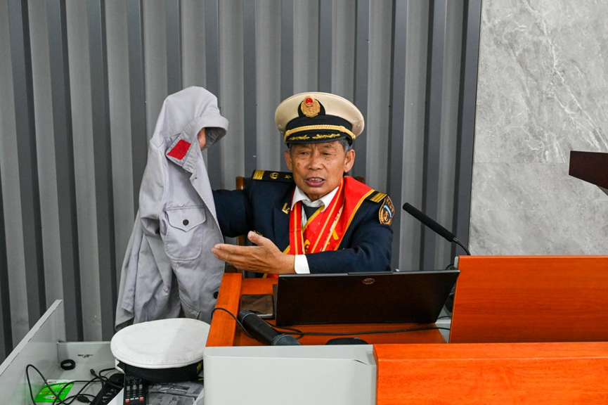 “灯塔是船的航标灯,塔长就是塔的航标灯。全国劳模这份珍贵的荣誉,激励我这盏灯越照越亮。”台上,全国劳模王炳交轻抚着褪色的航标工作服,目光投向台下的同学们,声音里流淌着四十九年守塔岁月的温润与坚韧。