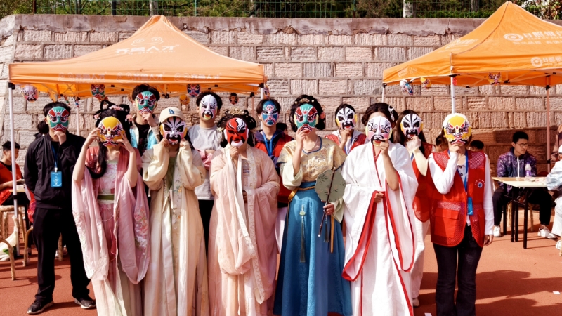 4月26日下午,一场别具特色的非遗文化体验市集活动在青岛理工大学校火热举行,来自理学院“知书达理”社区美育训练营的传统文化宣传员们纷纷拿出“看家本领”——川剧变脸、华美汉服、剪纸艺术、丹青戏韵、传统快板等非遗体验项目,与500余名师生共同体验、传承中华优秀传统文化。