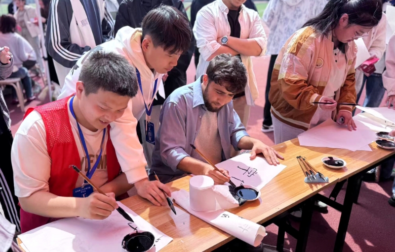 “原来传统曲艺藏着这么多乐趣!第一次见到这么多非遗项目,深刻体会到了中华优秀传统文化的深厚底蕴与迷人风采。”数学242班王雅茹现场学习了打快板,掌心虚拢留出共鸣空间,手腕轻轻一抖,“嗒嗒嗒”清脆的声音便从两块竹板间传了出来。活动还吸引了数十位外籍学生参加体验,“知书达理”社区美育训练营的传统文化宣传员们现场为留学生上了一堂“量身定制”的文化体验课。“我体验了快板、书法、剪纸等多个项目,并把拍摄的照片、视频发给远在家乡的亲友,他们都觉得很有特色很有意思,中华文化真的博大精深。”阿富汗籍留学生米切尔说。