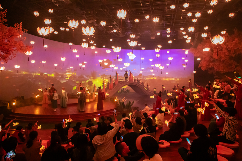 《只此周庄》是由周庄镇人民政府与中国东方演艺集团共同打造的行浸式多维空间剧,自2024年7月首演以来,累计演出超500场,接待海内外观众突破10万人次,获评“全国高质量发展投资创业范例”“长三角古镇文旅消费新场景”等殊荣,成为江南文化行浸式演艺标杆之作。此次焕新展演通过五大空间场景的全面升级,让观众在虚实交织科技赋能的美学场域,与剧中人物同频共振,在“不负我心,只此周庄”的哲思中,感受传统文化与当代精神的深刻共鸣。《只此周庄》总导演靳韬表示:“焕新后的《只此周庄》,看似是表演内容的提升,实则是观众体验的优化。900年前的上元灯节变得更市井、更贴近、更互动。我们希望能唤醒每一位来现场的观众,从内心中对自己、对家庭,甚至对国家有一份更好的祝愿。”焕新后的《只此周庄》通过进一步加强3D视觉效果和人物内心独白,让文字的美与舞台的美双向加持,从周庄这一个小起点扩大到整个“江南梦”,视野更宽、站位更广、体验感更强。