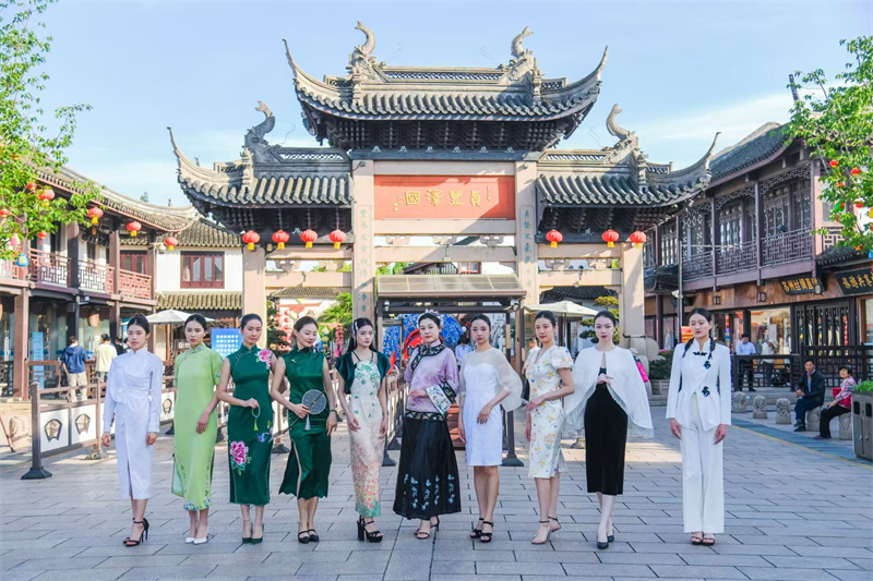 花桥晨风时尚创意产业园紧邻世界设计之都上海,拥有近150家时尚企业与300位独立设计师,致力于以研发创新推动传统文化与时尚产业的深度融合。本次活动联动晨风集团旗下品牌红馆旗袍、KEBING轻礼服,以三大主题秀场串联起周庄的过去、现在与未来。红馆旗袍秀以“黛瓦朱颜·青绿映波”为主题,将周庄水巷石桥的意境与《只此青绿》山水美学相融,传统旗袍焕发现代生命力;KEBING轻礼服秀“羽织晨光·时光之桥”则借宋代美学为核,以中西剪裁碰撞呈现“行走的江南画卷”。尤为惊艳的是《只此周庄》剧中人物走秀环节,NPC演员穿梭于剧场廊桥与光影之间,带领观众沉浸式穿越千年周庄故事。