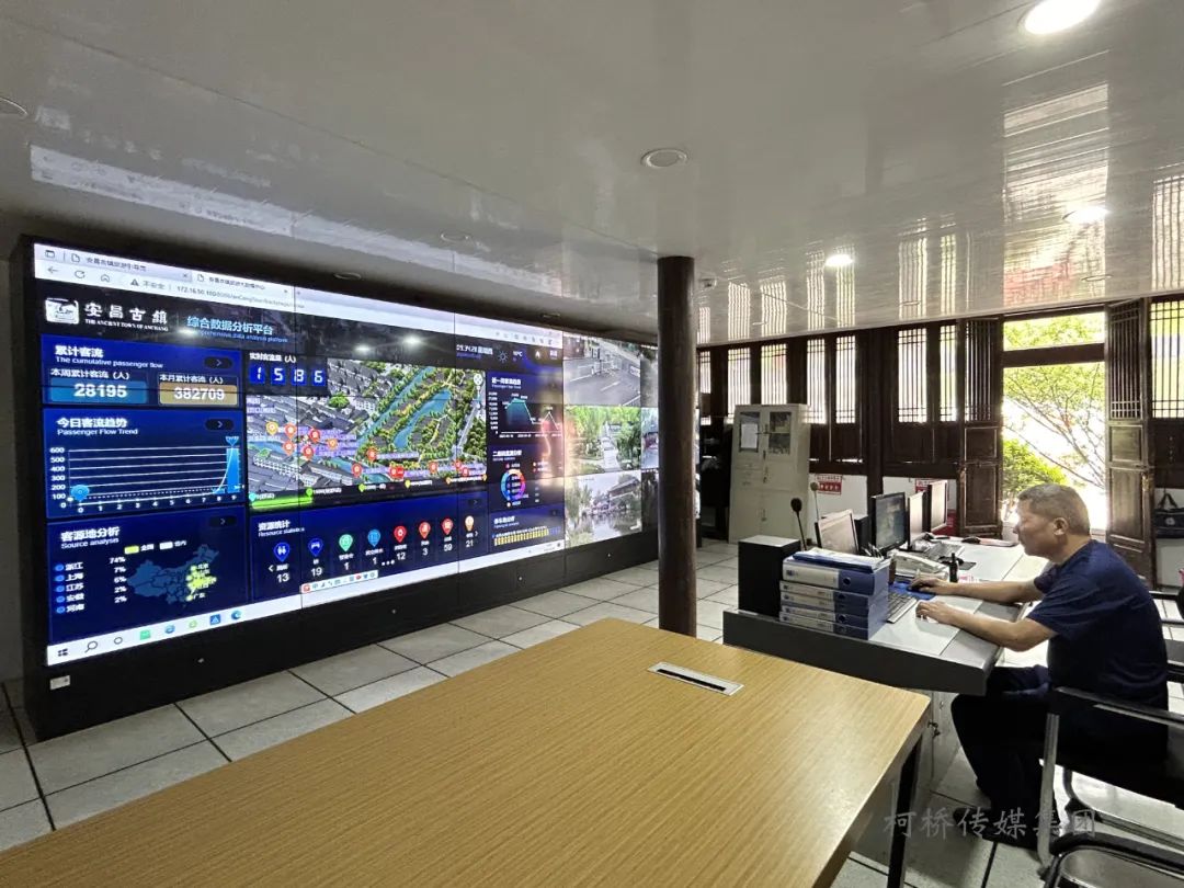 在安昌古镇游客服务中心的智慧大屏上,AI鹰眼俯瞰街巷,烟感报警器织就消防天网。据相关工作人员介绍,近年来,古镇着力推进景区数字化转型,完成智慧旅游和智慧安防两项工程,涵盖无线覆盖、监控覆盖、广播覆盖、二维码自助导览系统、软件平台开发等,同时集成热成像吸烟告警系统、数字音响扩建系统、古镇全景AI鹰眼指挥系统、景区车辆引导系统、古镇广场大屏五项延伸系统,为广大游客提供更舒适、智慧、便捷的旅游体验。