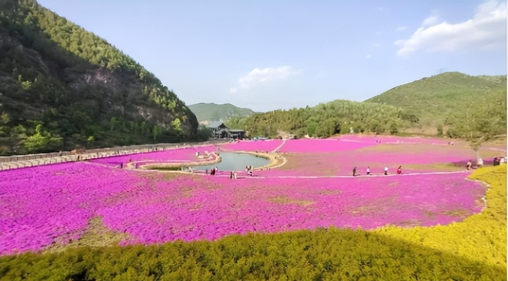 白色、紫色、淡粉、玫红的花瓣层层叠叠,花朵错落有致,与不远处的汤王山、汤王庙交相辉映,彰显出古风古韵之美。伴着娇艳的花海景观,游客们穿着华美的汉服,沐浴着和煦的春光,或赏花拍照,或起舞高歌,一览国色天香之美。