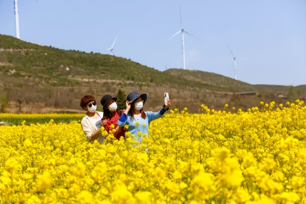 4月中旬釜山太行一号公路沿线的油菜花竞相绽放,连绵的金黄色花海与壮丽太行山景交相辉映,构成绝美风景,是乡村旅游与摄影爱好者的理想之地;
