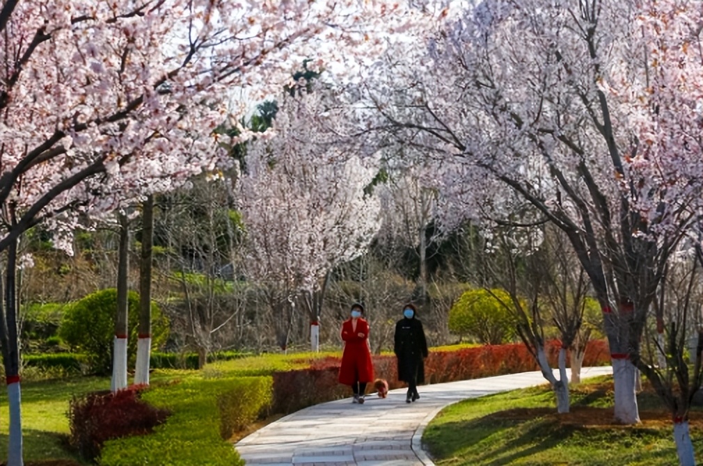 晋城的城市绿心,这里种植着近万株樱花,每年春季犹如一片五彩斑斓的花海,樱花与龙马湖相互映衬,风景如画。