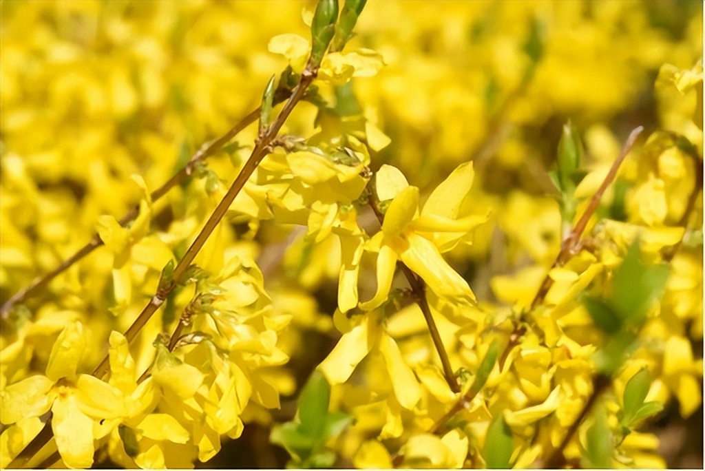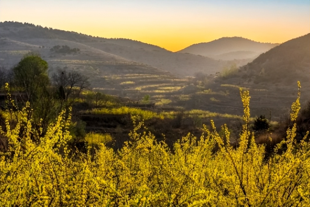 连翘花:陵川古郊乡、陵川附城镇、陵川马圪当乡等连翘基地,太行山王莽岭景区(4月中旬)