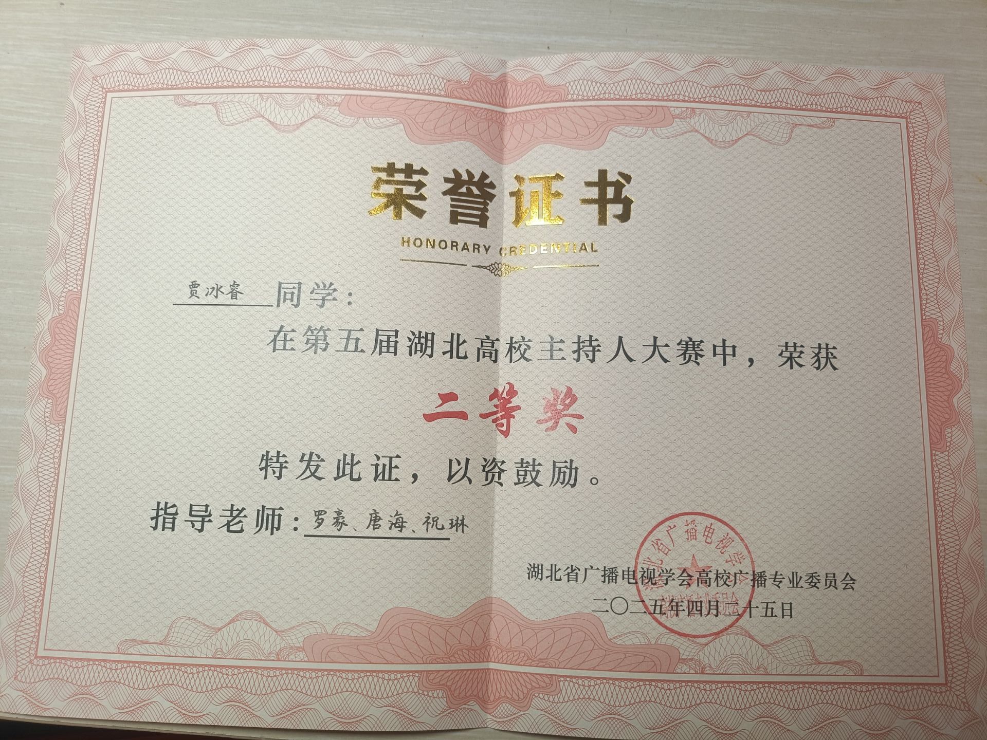 4月25日,第五届湖北高校主持人大赛圆满落幕。武昌理工学院影视传媒学院播音与主持艺术专业大一学生贾冰睿在影视传媒学院及党委宣传部老师的指导下,凭借出色发挥,从众多参赛者中脱颖而出,斩获大赛二等奖。