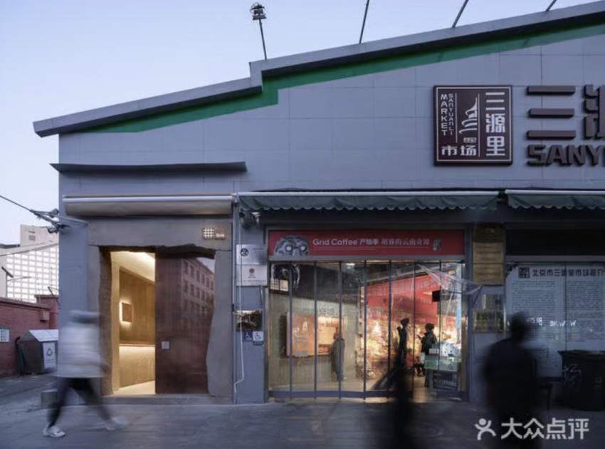 同样在北京,2023年,精品咖啡品牌Grid Coffee 在网红菜市场“三源里”开设概念店,门店紧挨菜市场正门,主打“手冲放题”,即按照当日咖啡豆单循环冲煮,消费者可挑选喜欢的咖啡豆购买带走,吸引不少消费者前往打卡。