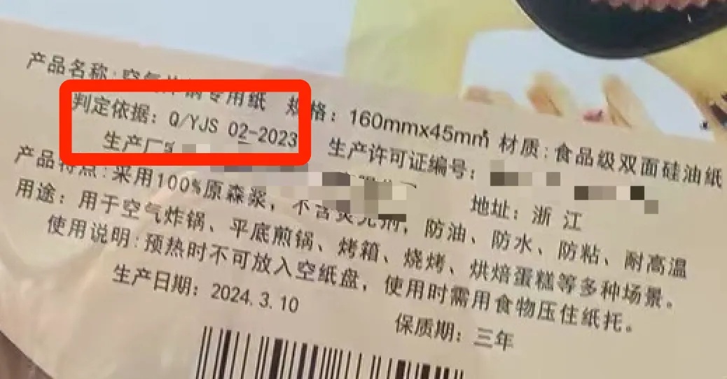 确定产品不是“三无”产品之后,建议大家看一看硅油纸的执行标准。