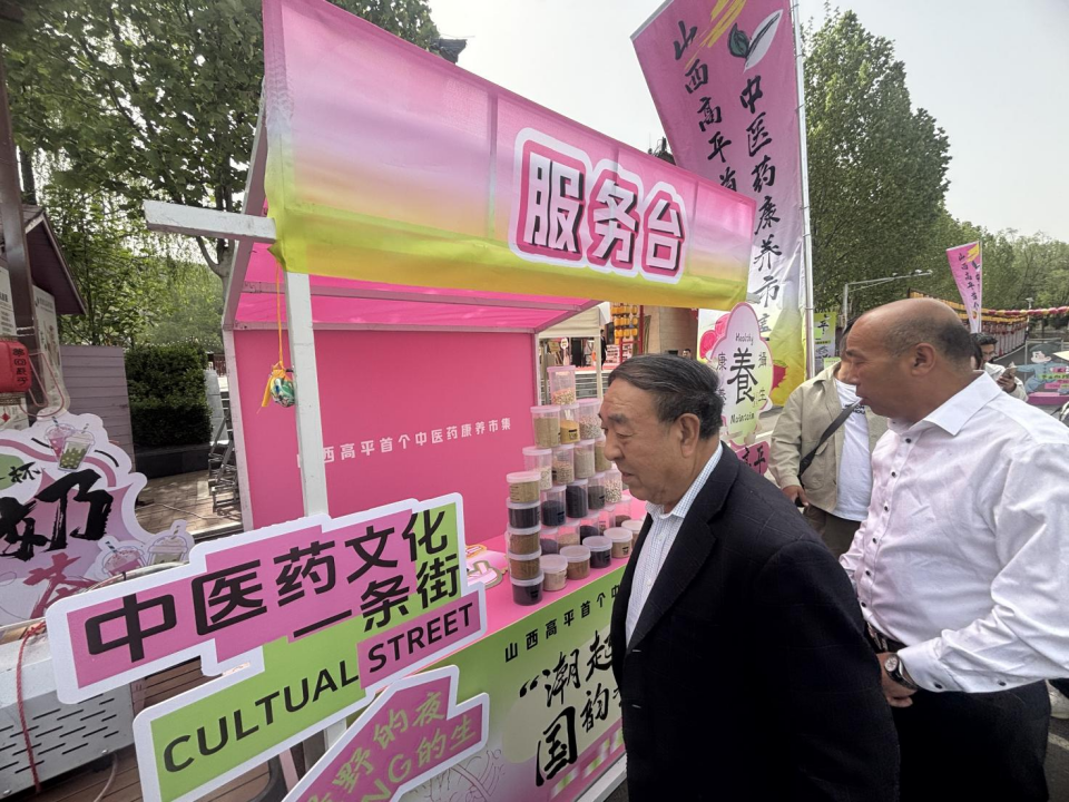 据介绍,中医药文化节贯穿整个“五一”假期,每天将邀请名老中医为高平市民和广大游客提供个性化的康旅度假和中医问诊服务。中医药文化节汇聚来自全国和山西省内广誉远、长治市上党区神农宴、山东潍坊黄元御、河北药都安国同仁堂博物馆的知名品牌药食同源康养产品,以及高平市原村黄芩、北诗柴胡、米山党参、三甲牡丹、野川地黄、连翘等地产道地药材、代用药茶等100余种产品竞相亮相中医药康养市集,供大家体验选购、健康养生。