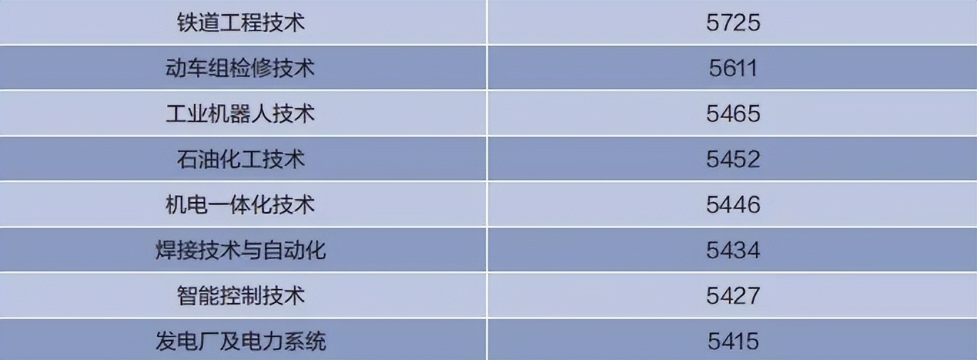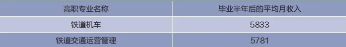 2023届高职专业月收入TOP10排行榜中,铁道类专业占据了前4名(铁道机车5833元、铁道交通运营管理5781元、铁道工程技术5725、动车组检修技术5611),基本与本科生平均月收入持平。