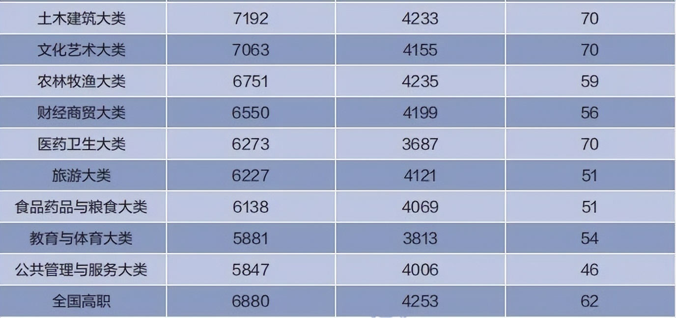 2020届高职各专业大类毕业三年后