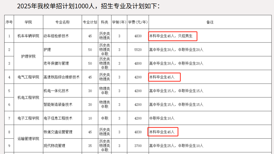 近日,郑州铁路职业技术学院公布的2025年单招计划引发了广泛关注和热议。今年,学校继续面向本科毕业生招生,计划招生135人,涉及动车组检修技术、高速铁路综合维修技术、铁道交通运营管理三个专业,毕业后发放专科毕业证。